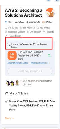 رحلة المستخدم في مسار "AWS 2: Becoming a Solutions Architect" للحصول على المكافأة