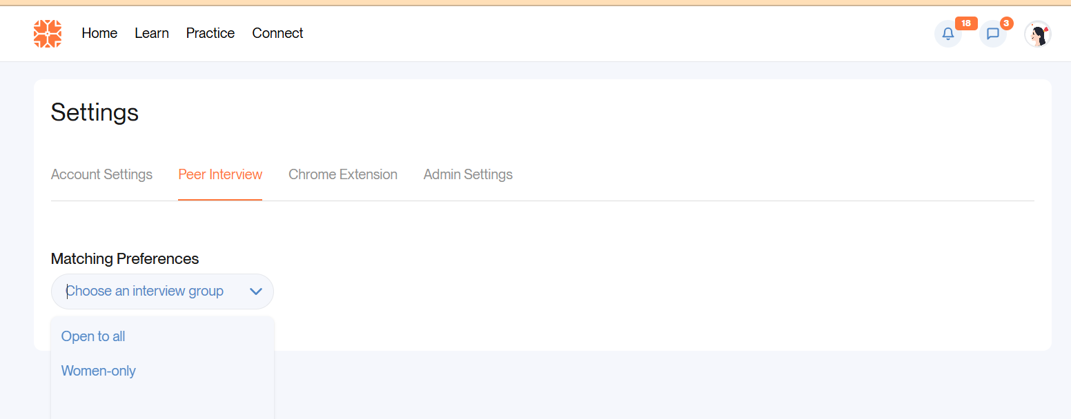 ادخلي إلى قائمة الإعدادات (Settings) ثم اختاري مقابلات الزملاء (Peer Interview).